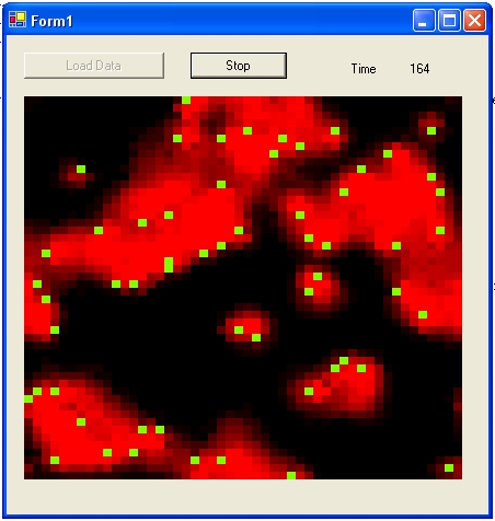 program simulates a number of virtual bugs moving around, emitting heat during
